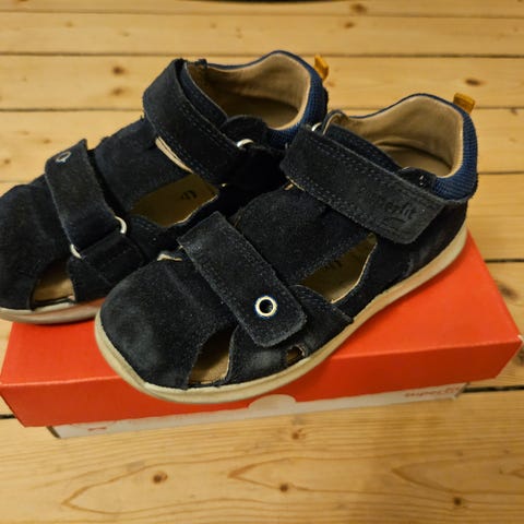 Geox-sandaler i skinn i størrelse 25. Brukt av 1 barn i 1 sesong. Har blitt noe slitt på tuppene, se bilde