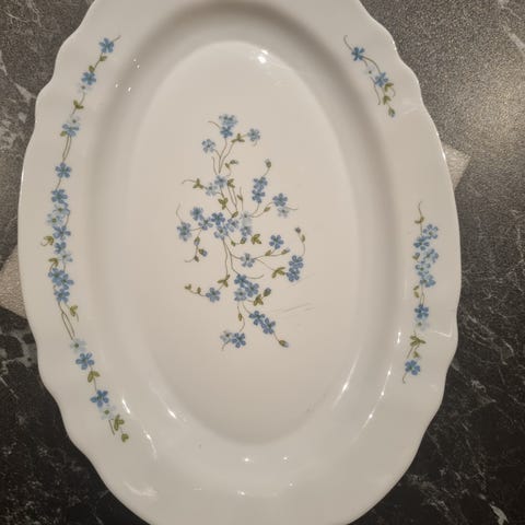 Knapt tatt i bruk. Ren fin blåfarge i dekor. Har 5 kuverter a 3 deler. Samlet 250,- Sender kun via post i butikk om kjøper dekker porto/frakt ca 80