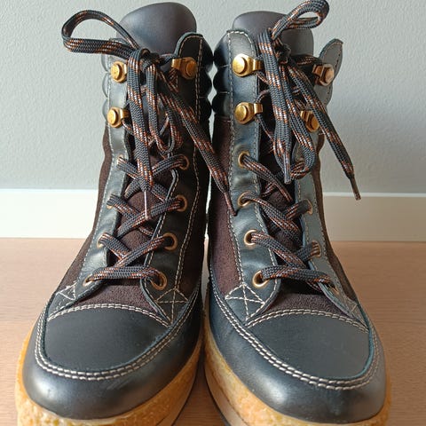 Lekre brun bronse Høyhælte joggesko, brukt 2 ganger i størrelse 40