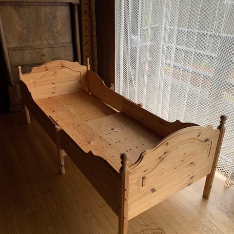 Selger en Vintage norsk produsert Stompa barneseng 75 x 170 med sengebunn. Madrass og sengetøy medfølger ikke