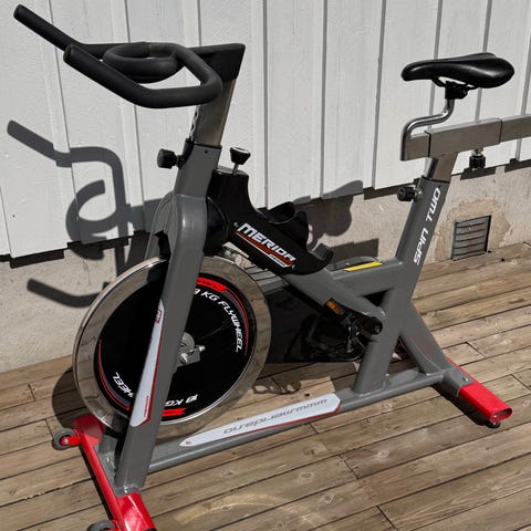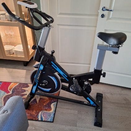 Super spinningsykkel som har stått ubrukt i flere år. Den bør derfor gås over med oljekanne og smøres her og der.