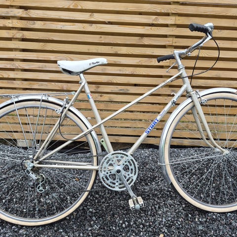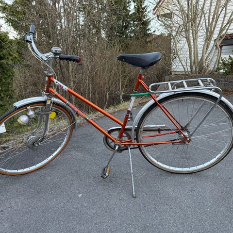 Møt våren med stil! Sølvfarget DSB touring damemodell fra 1984. Restaurert og i god stand. Originale detaljer som rammelås med nøkkel, avstandsmarkør og bagasjebrett. Bukkestyre. Nye dekk, 28". Rammestørrelse 57cm. Passer en person på 175cm og høyere. Møt våren med en klassisk og kul racersykkel!