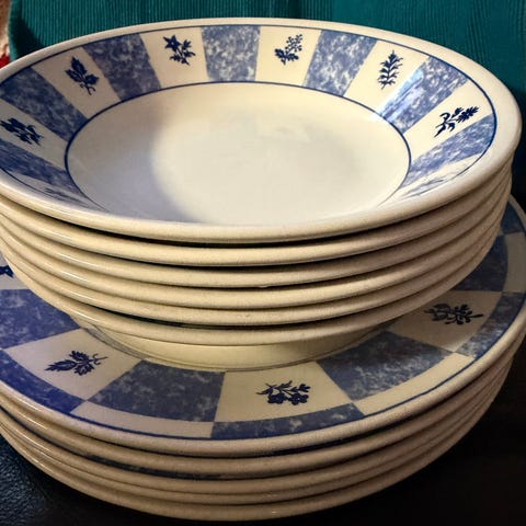 Tefat helt fine ,asjettene vanlig bruks slitasje.(ganske fine)Asjett 80 pr .stk .tefat 40 pr.stk.