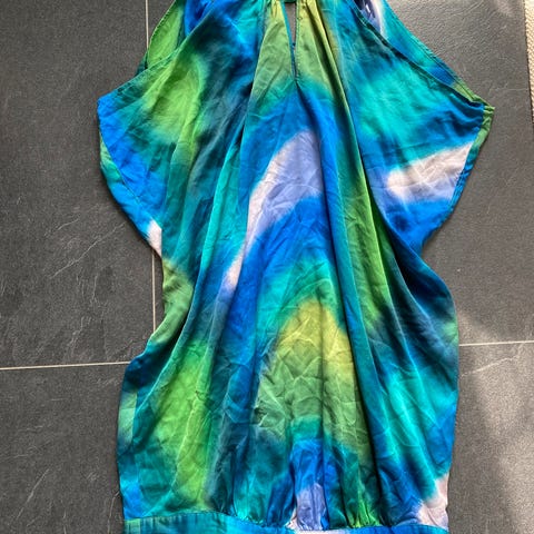 Kjole i fantastiske grønne og blå farger i 100 % silke.
