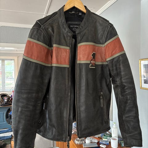 Stort sett ubrukt, som ny skinn jakke, bukse i str L. Kan sendes mot forhåndsbetaling.