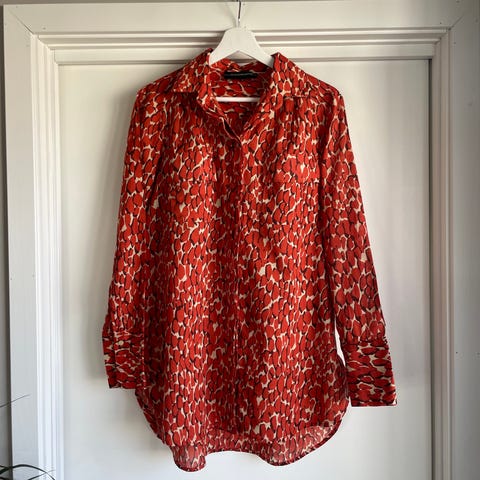 Zara skjorte oversized str S brukt en gang selges kr 190. Lekkert mønster og nydelig rosafarge. Kan semdes/hentes.