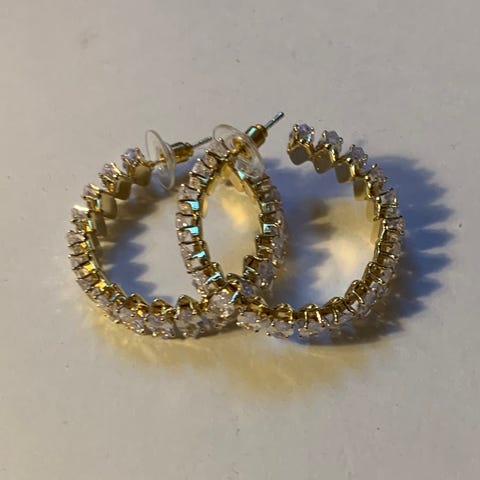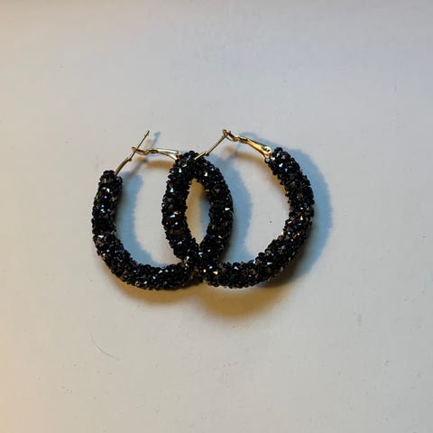 2 par fine øredobber fra 1980-tallet. Ett i gullfarget metall og ett i plast lignende materiale. Selges samlet. Pris er satt. Ingen bud.