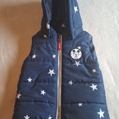Pent brukt Mikke Mus boblevest i str 92 i mørk grå farge. Søte ører på hetten.