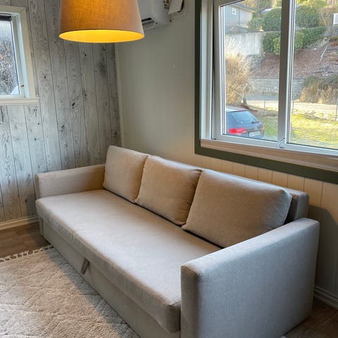 Jotex Albany sovesofa 2000,-/Bud. Ikke brukt til å sitte i, kun brukt som sovesofa to ganger. Selges fordi den står og tar opp plass. Må hentes på Stord, eventuelt at kjøper betaler for frakt.