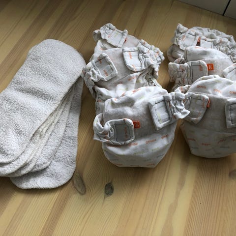 Røyk- og dyrefritt hjem (men har besøk av hund en sjelden gang). Kun vasket med parfymefritt vaskemiddel (men lukter litt av lanolin da de er oppbevart sammen med lanolisert tøybleie).