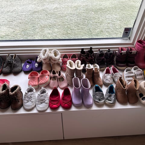 Alle fire i str 20/21-22 er fra H&M mens de blå i str 23 er fra move mountain.