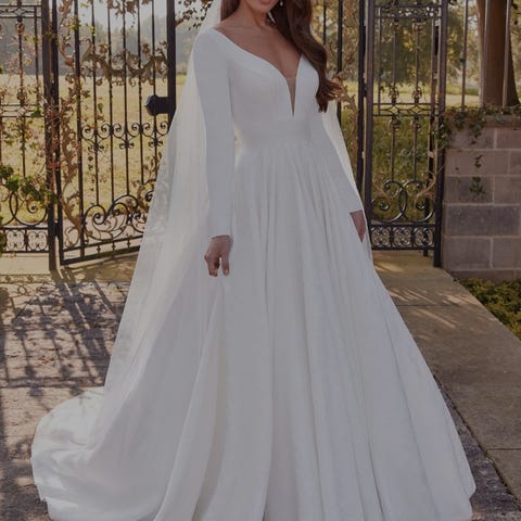 Slør som er samme farge nyanse som kjolen og tilpasset slepet selges med kjolen.