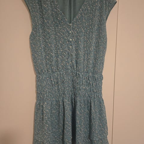 Søt grå-grønn kjole med broderi i midjen. Shein.