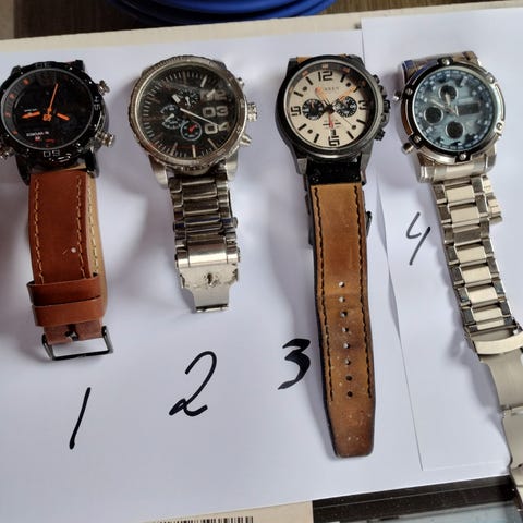 To herre klokker selges billig. Begge klokker går. Nettopp har byttet batterier. Blå koster 750kr. Gulfarge koster 1350 kr. Kan sende i hele Norge. Begge to koster 2000kr med frakt.