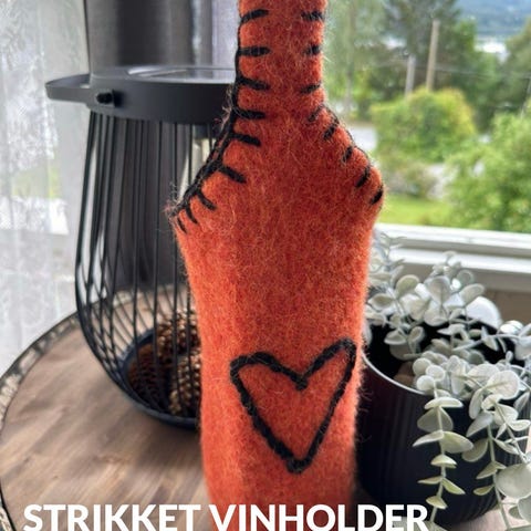 Håndstrikkede flaskevarmere laget av ull med tradisjonelt mønster i fargene rød, blå og hvit. Passer til standard flaskestørrelser og kan brukes til å holde flasker varme eller som dekorasjon.