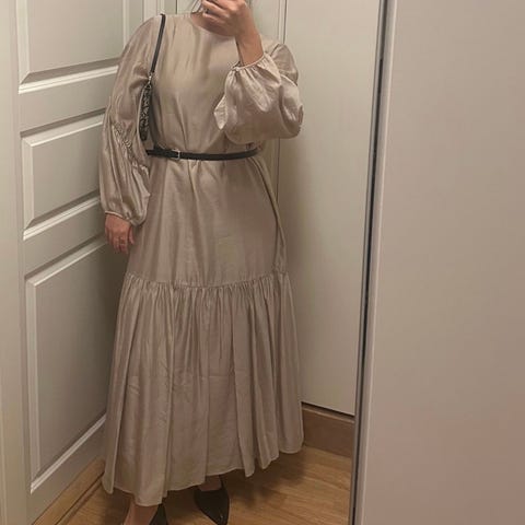 Svært lite brukt hvit skjortekjole i lin fra Marco Polo selges
