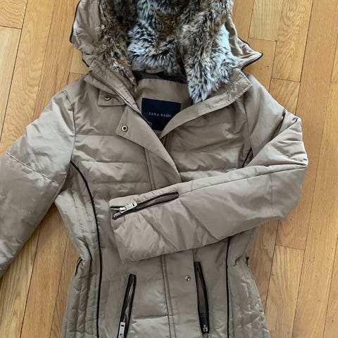 Lekker jakke fra Zara med mange detaljer. Knyttes i livet. Størrelse S.