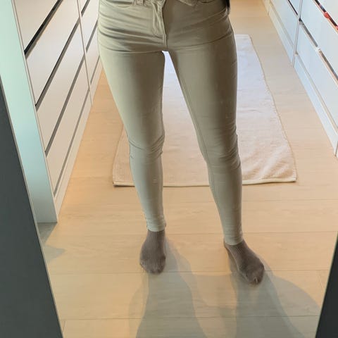 Bukse 2. Jeans fra Zara i en sommerlig lys-beige farge. Selges da de er litt korte (er 173). En liten flekk på lommen bak, men ellers i god stand. Strl 32, men stretchy stoff, så passer kanskje 34/36.