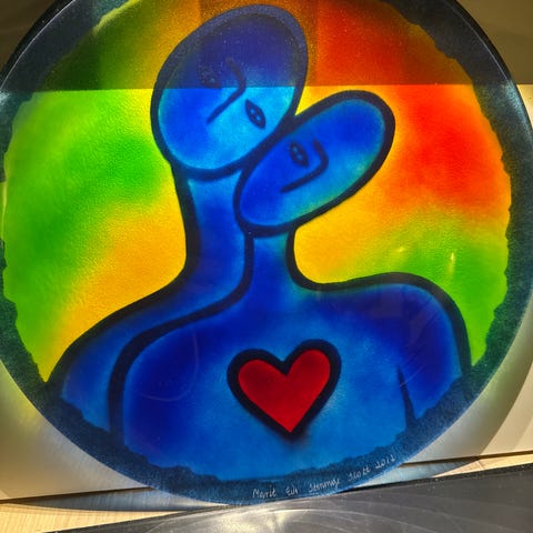 Vase og fat laget av den norske glasskunstneren Heidi Klefstad i 2007 på Steninge Slott i Sverige.