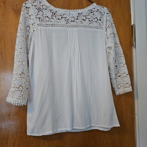 Svak lilla/sirene farget topp med blonder. Kan sendes med vanlig post for 58kr