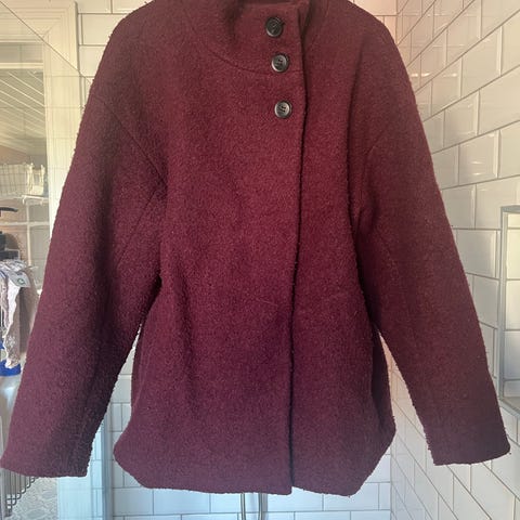 Selger denne vakre jakken i akryl fra Sara Kelly by Ellos.,den er oversized i fasongen og litt stor i str til tross for at den er en 34-36.,kjempefin på om mye kule snøre detaljer som gjør at du kan forme den som du vil 👌🏼nydelig bred krage og gode lommer har den også 👍🏼