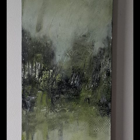 Akvarell m/passepartout i glass og ramme - 35 cm br. - 31 cm H. Som nytt.