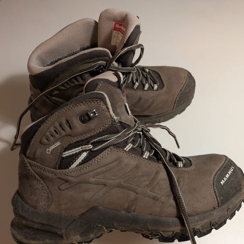 𝗠𝗮𝗺𝗺𝘂𝘁 𝗥𝗶𝗱𝗴𝗲 𝗟𝗼𝘄 𝗚𝗧𝗫 trekking sko for kvinner. Perfekt for Via Ferrata eller i skrånende terreng.Brukt flere ganger på korte byturer. Perfekt stand, bortsett fra tegn på normal bruk. En veldig behagelig sko til en rimelig pris😁