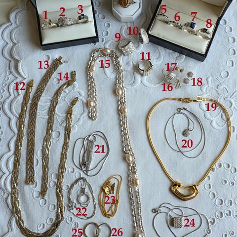 Fra en gullsmed som har gått konkurs har vi fått inn en rekke sølv smykker. Disse kan hentes etter avtale. Det er avslag på butikkens opprinnelige priser. Det er også mulig å få gjenstander sendt, men forsikret pakke koster 70 kr.