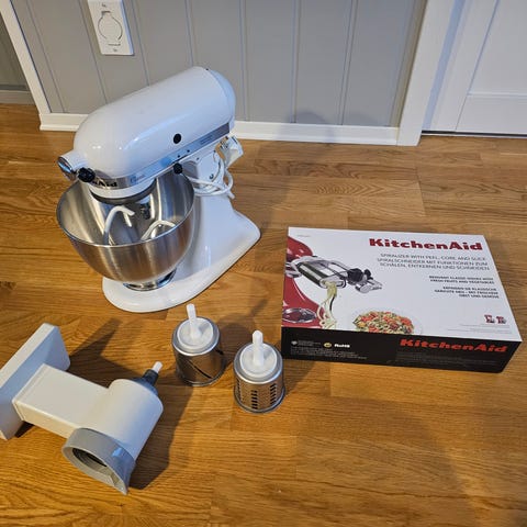 Tittel: KitchenAid Classic kjøkkenmaskin 5K45SSEWH – hvit – mye ekstrautstyr