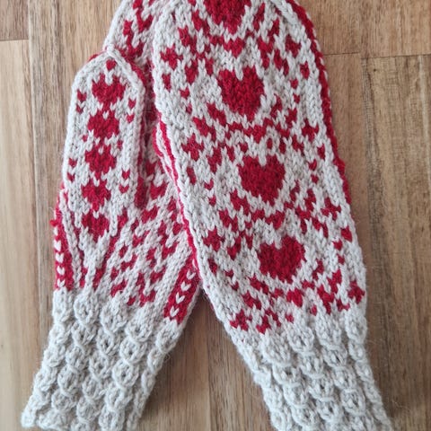 Strikket i 100% norsk ull rauma vams garn. Gode og varme votter.