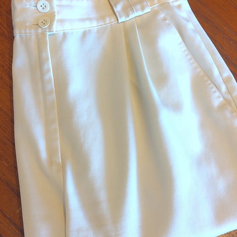 Fargen er fløtehvit. Stoffet - 95% bomull og 5% elastan.
