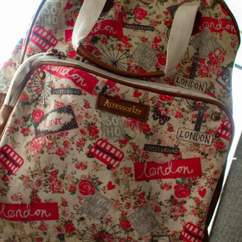 4 rom med glidelås og 2 åpne lommer (én på hver side).
