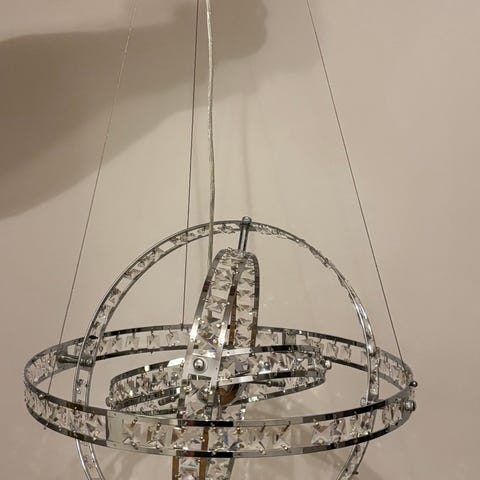 Noen som ønsker seg en ny, koselig taklampe med prismer/krystaller, til 5 lyspærer.