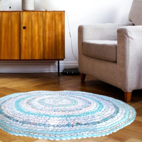 Heklet gulvteppe i pastellrosa kjøpt på interiørbutikk. Knapt brukt.