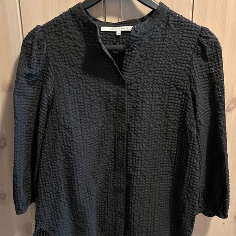 Ny topp/bluse, med litt borderi/mønster. Fra second female. Kjøpt på Tatler. Kostet 1100kr. Litt stor i størrelsen, passer best small. trekvart lange armer, knapp bak i halsen