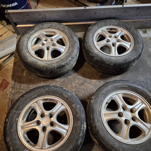 Dekkene er produsert 2013. Har bare tatt opp plass i garasjen siste 8 år så ikke utsatt for vær og vind.