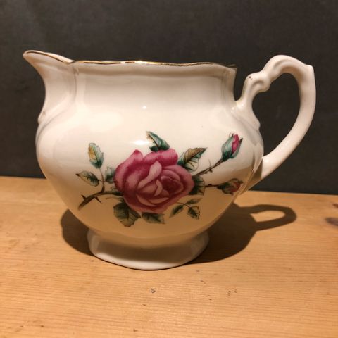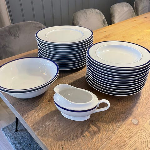 Pent service i hvitt med sølvkant.