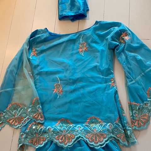 Afrikansk drakt med detaljer. Sydd i tykt stoff. Ubrukt.
