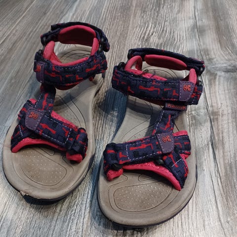 Pent brukte Merell sandalar, str. 31. Den eine sandalen har eit lite hakk i front, sjå bilete, men dette har ikkje noko å seie for bruken.