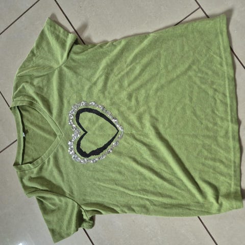 Pen t-skjorte i 100%bomull, pyntet med applikasjoner foran og bakk, små splitter på sidene