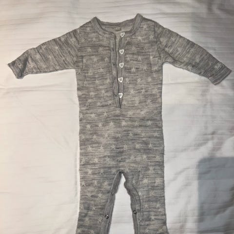 Svært lite brukt sparkedress fra Wheat størrelse 68. Grønne og hvite striper.