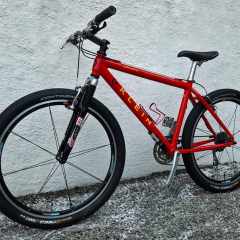 Manitou Black Bomber (?) 26'' med velfungerende lockout, samt feste for felg- og skivebremser.