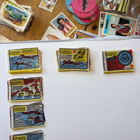 ...og hvis du samler på magneter, så er kanskje dette noe du ikke allerede har? Jeg tror det er magneter til Industrivern-instruksjonstavler/læring, men vet langt fra sikkert. Mange forskjellige symboler, og sjekk spesielt de fine magnetene med gassmasker :) Alle magnetene funker helt fint, og de blir nok enda penere med en liten vask (litt industri-støv på dem) Størrelsen på arket er ca A4, så se størrelsen på magnetene i forhold til dette.