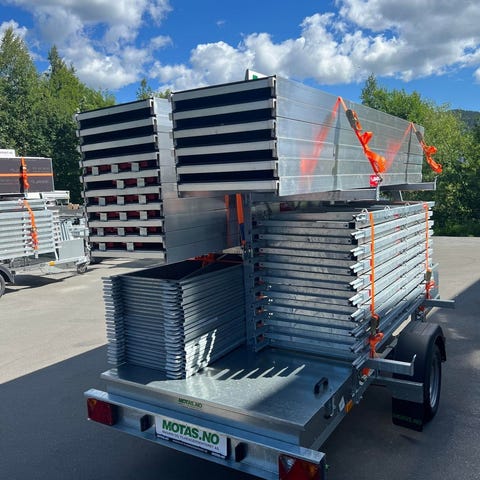 Utleige av ca. 90 m2 med Jamax stillas ferdig pakka på stillastilhengar.