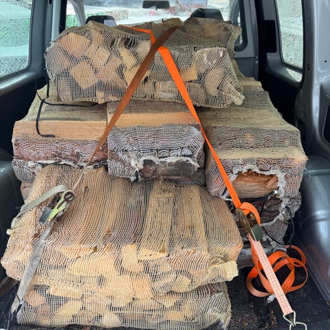 Veldig vakker og praktisk vedkurv. Kurven er laget av metall, og jeg la et nett på den for å holde små trebiter (opptenning). Nettet kan enkelt fjernes.