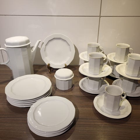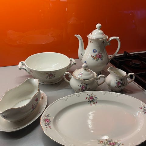 Porsgrund servise i hvit porselen. 2 skåler og krukke med lokk igjen. Fløtemugge er SOLGT. Ideelt for både hverdagsbruk og spesielle anledninger. Laget av holdbart materiale som er lett å rengjøre.