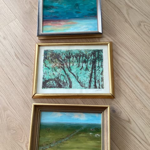 Flere maleri, noen olje på lerret eller plate, noen akvarell, noen innrammet, se billedtekst eller send melding for detaljer om kunstner. Se pris for hvert enkelt maleri i billedtekst.