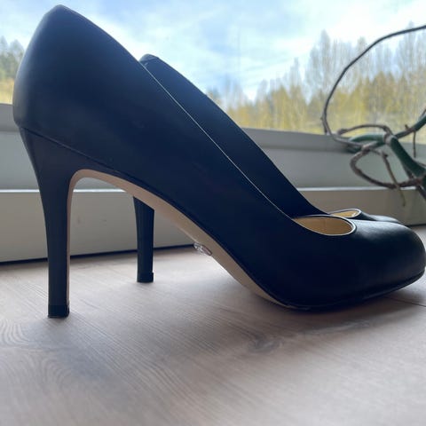 Pene sandaler med høye hæler, er veldig behagelige og har god plass til tærne. Ble knapt brukte, selges da de er for små nå tom meg.