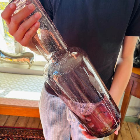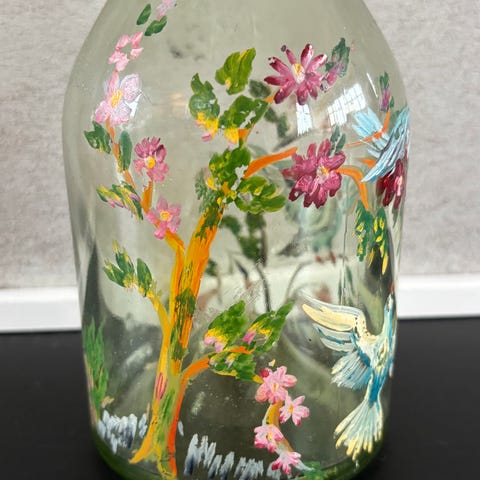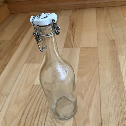 Tøff gammel flaske som er gjort om til lampefot.