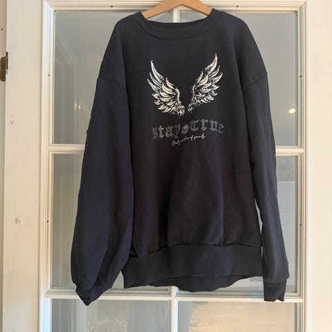 2 stk pent brukte XS Collage-gensere fra GinaTricot. Athl. Dept America 1983 selges billig da for små.